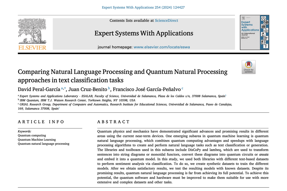 Excited to share our peer-reviewed publication “Comparing Natural Language Processing and Quantum Natural Processing approaches in text classification tasks”! 🚀